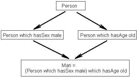 The browser above shows us some of the position of Man in the hierarchy. Note that all the subsumptions shown above are formal: they are derived from the definition of the Man category. The browser is displaying the following subsumption relationships: